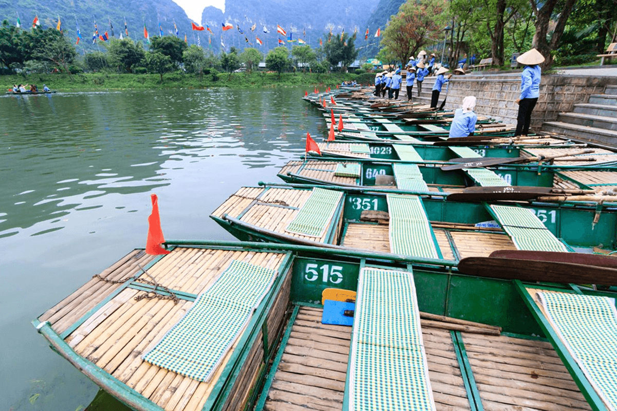 Often called “Ha Long Bay on land,” Ninh Binh offers a peaceful escape with limestone mountains, rivers, and ancient temples. A boat ride through Trang An or Tam Coc allows visitors to pass through caves and rice fields while enjoying tranquil surroundings. For panoramic views, climbing Mua Cave, Am Tien Cave provides a stunning perspective over the Ngo Dong River and surrounding landscape.