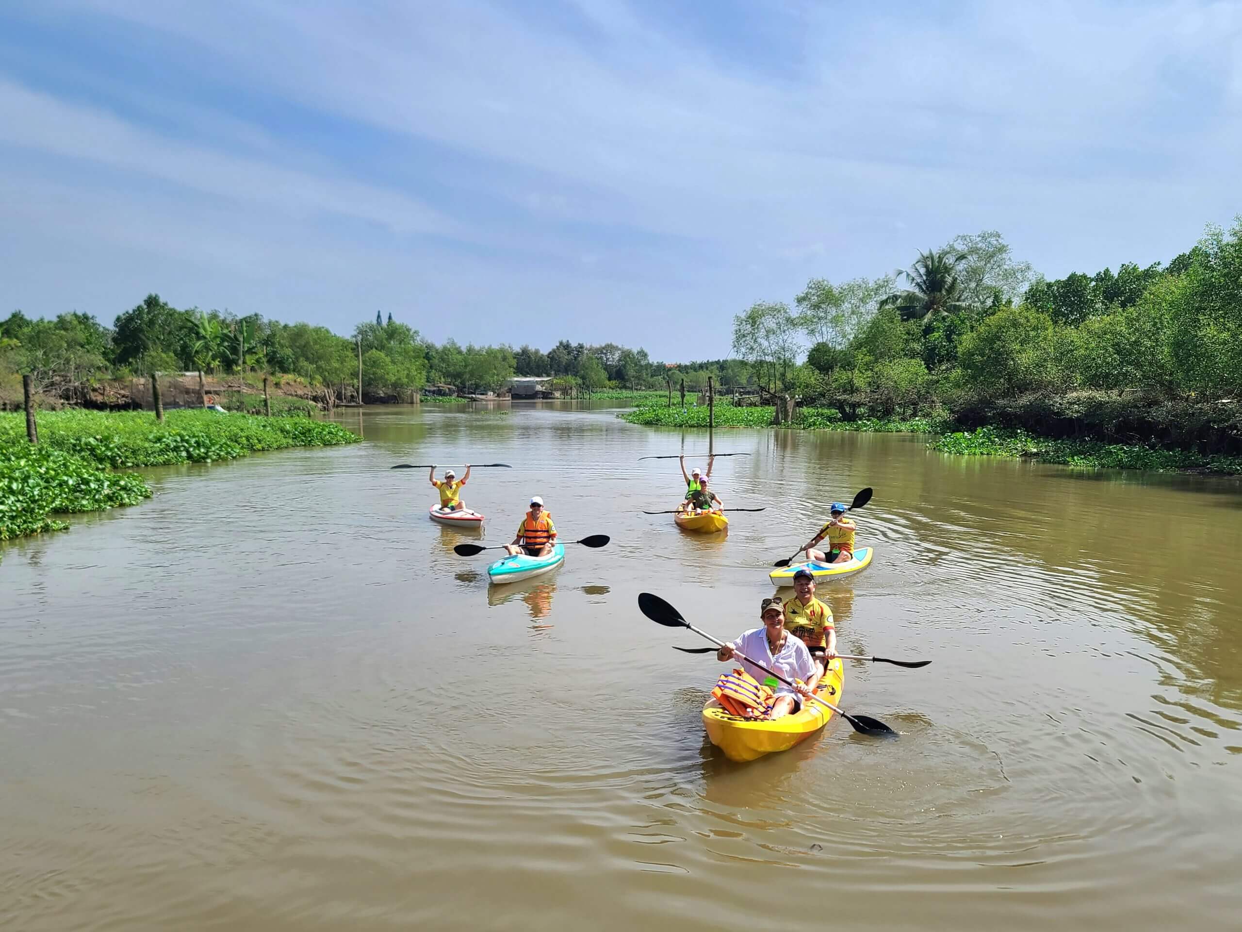 Vietnam kayaking is a cultural immersion. Forget the open sea; here, you are navigating the “arteries” of southern life. Paddle through small canals shaded by fruit orchards and coconut trees. You’ll pass locals washing clothes, children swimming, and boats loaded with durian and dragon fruit.