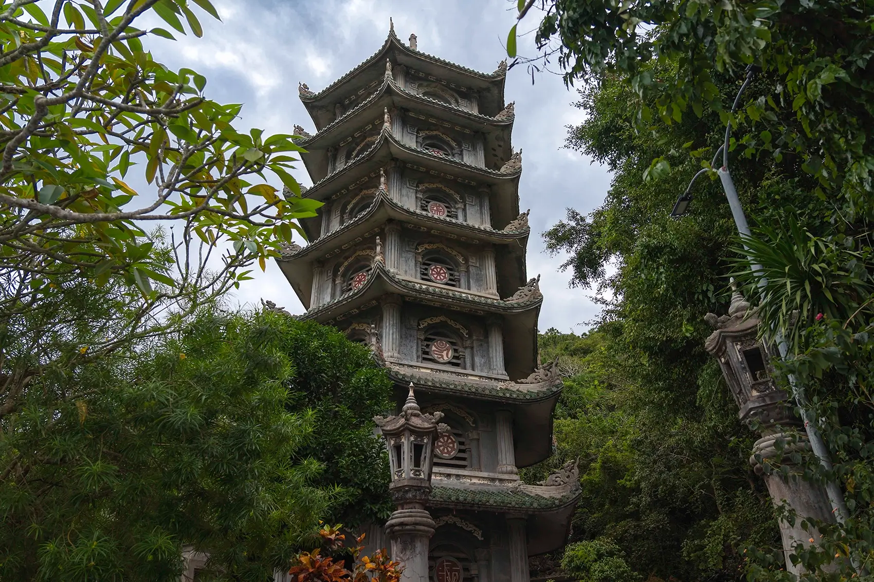 The pagoda is located approximately 10 kilometers northeast of the Da Nang city center on the Hoang Sa coastal road.
