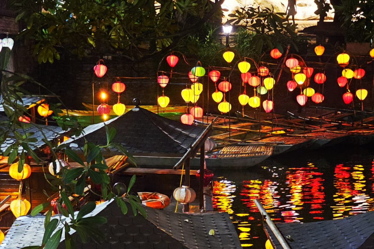 • Tam Coc – where small boats, riverside cafés, and restaurants sometimes feature lantern decorations that reflect beautifully on the water