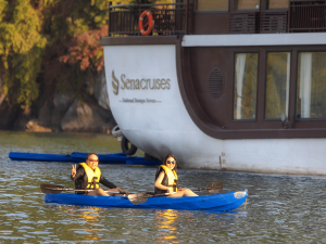 Cruise heads to Luon Cave. In this area, it’s time for you to heat up with kayaking (about 30 minutes kayaking) or enjoying the beautiful scenery at Hang Luon (Creepy Cave) with the Rowboat – which is rowed by the local people in Ha Long Bay.
