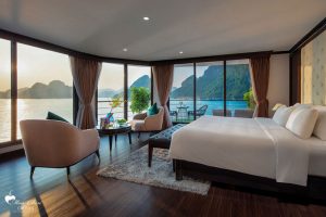 21:00 – 22:00: Enjoy the lively ambiance of the bay from the deck. Immerse yourself in the music, sip on a cocktail at the bar, or go squid fishing with the sailors. Alternatively, relax in your room and admire the beauty of Ha Long Bay from your balcony.