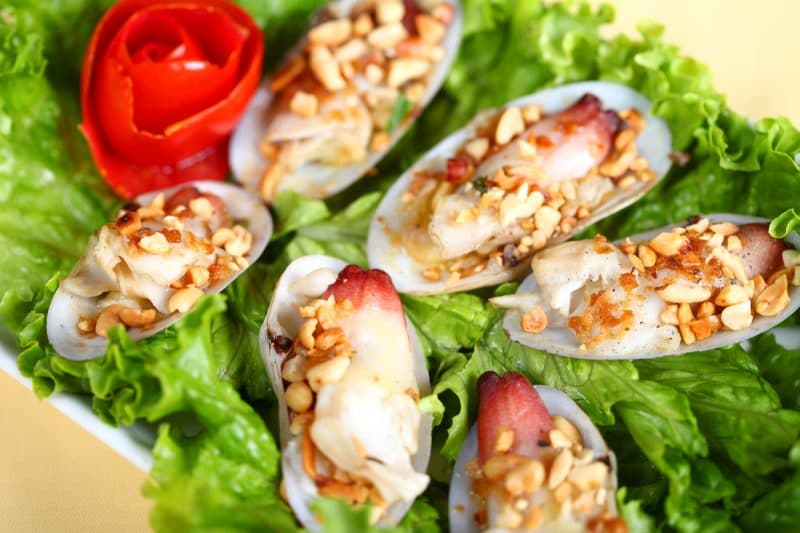 A rare and nutritious shellfish found in the waters around Cat Ba. Usually steamed with ginger, scallions, and garlic, it has a sweet, crunchy flesh that is a favorite for those visiting after a day of kayaking.